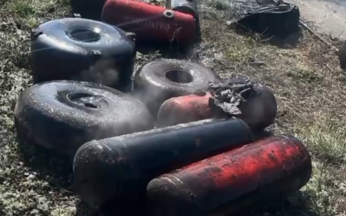Ситуация была опасной: в металлическом контейнере рядом с очагом возгорания стояли 10 газовых баллонов (объемом 30 и 50 литров). Пожарные оперативно вынесли их в безопасное место, предотвратив возможный взрыв.