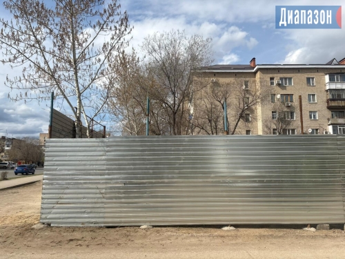 Сейчас территория ограждена профлистом, паспорта объекта пока не видно. Деревья все еще остаются на месте.