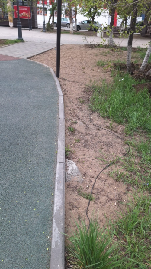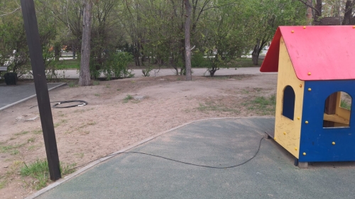 Есть вопрос по обустройству детской площадки, расположенной рядом со скейт парком, возле ресторана "Рахат". Там есть освещение, но кабель электрический проходит по земле, в некоторых местах замотан изолентой. Там же напряжение, кругом дети маленькие. Кто монтировал освещение, и почему электрический кабель просто на земле валяется?