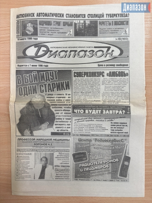 Наш подписчик и давний читатель Владимир Цыганков недавно рассказал, что много лет хранит старые номера «Диапазона». Один из них выпущен 27 лет назад, другой – 20 лет назад. Владимир Цыганков - потомственный актюбинский селекционер, кандидат сельскохозяйственных наук.
