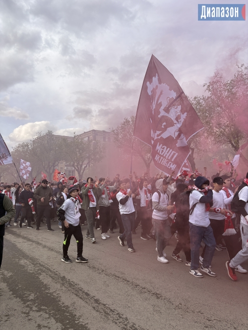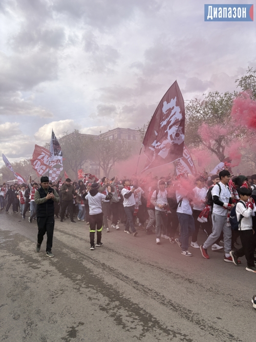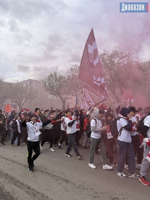 Сотни футбольных фанатов самых разных возрастов прошли сегодня по центральному проспекту, чтобы поддержать нашу команду перед матчем, передает «Диапазон».