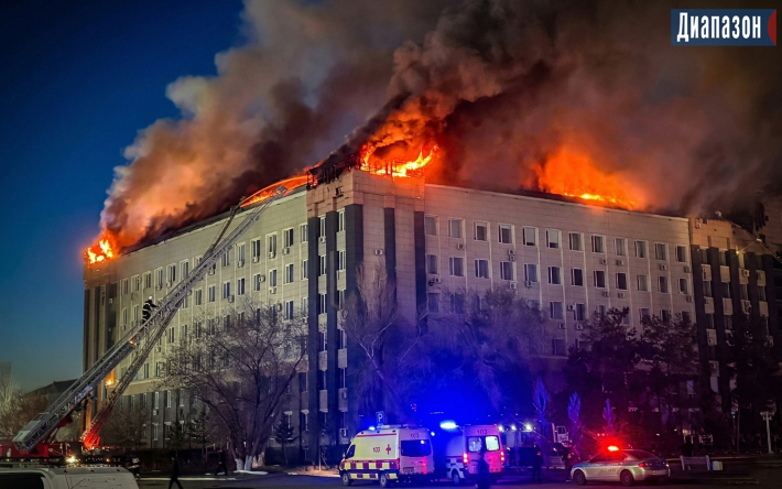 7 апреля, областной акимат. Пожар был примерно на 300 квадратных метрах крыши. Пострадавших нет, за медицинской помощью никто не обращался. || Фото из архива газеты «Диапазон»