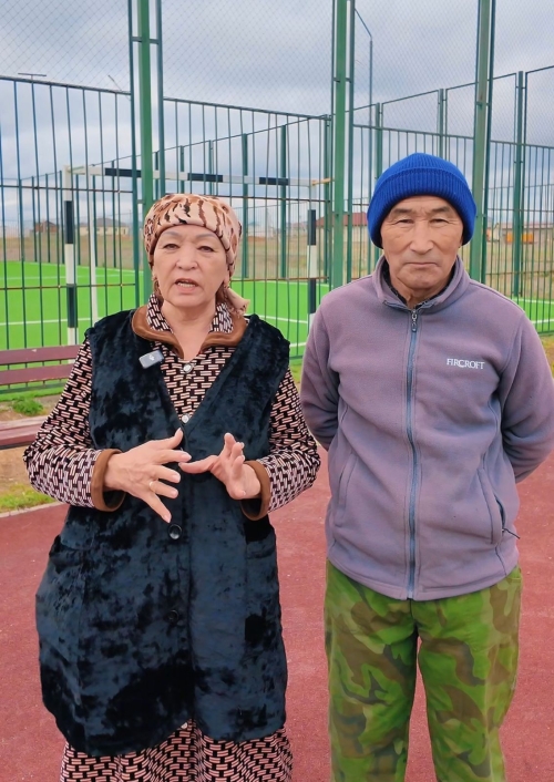 Жания Ерниязова и Жаксан Абденов живут неподалеку. Каждый день после того, как дети поиграют, Жания апай подметает и убирает площадки. Жаксан агай ежедневно проверяет тренажёры и качели, и, если что-то ломается, он сам сваривает или ремонтирует. Каждую весну они вместе проводят субботник, приводя всё в порядок. Золотые люди – одним словом!