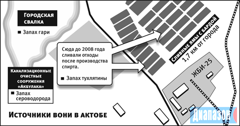 Итак, по словам замруководителя департамента экологии Айбека Молдиманова, источников, источающих сероводород, в Актобе несколько.