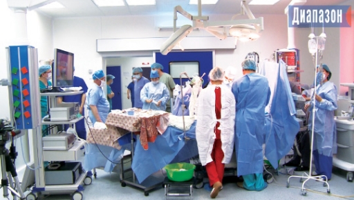 На фото: 25 ноября. Областная больница. 33-летней женщине пересаживают почку младшей сестры. Операция длится почти 5 часов. В работе заняты 20 специалистов, семеро из них из клиник Астаны. С хирургами приехала и операционная медсестра. В 2015 году в Актобе хотят провести десять операций по пересадке почек и печени. || Фото Владимира ЗОБЕНКО