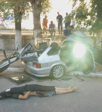 - По улице Шернияза ехала Лада 2114, и у нее лопнуло колесо, - рассказывает Айбек. - Машину развернуло, и она врезалась в другую машину. Одного человека из Лады выбросило через лобовое стекло, другого через дверь. Позже видели, как водителя вытаскивали из машины, руль вонзился в живот. Он был совсем молодой.