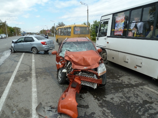 Авария произошла по проспекту 312 стрелковой дивизии. Столкнулись «Chevrolet», «Datsun on-Do», «Nissan Primera» и маршрутный автобус.