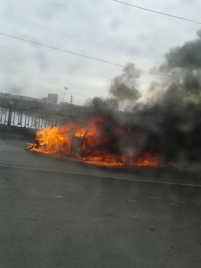 На мосту сгорел автомобиль. Жертв нет