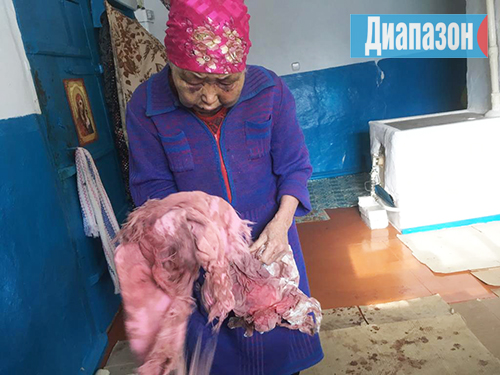 - 22 февраля в 8 вечера на нас напали. Я мыла посуду, сестра вышла посмотреть, закрыта ли в доме дверь. Вдруг заходит здоровый мужик, бьет меня ногой в лицо. Я упала, он продолжал меня избивать. Сестра лежала в коридоре вся в крови, мужик этот ножом исколол ей лицо и глаза. Врачам пришлось зашивать ей лицо. Вот ее сломанные очки, на них до сих пор кровь, - показывает бабушка. - Сестра буквально заползла в дом, когда меня избивали. Вот тряпки, которыми она вытиралась. Мужик кричал: «Соседи сказали, у вас есть миллион, отдавайте!».. Но у нас нет таких денег, пенсия маленькая. Сестра нашла кошелек, отдала тысячу тенге. Мужчина сказал: «Давайте еще!». Айман отдала последние 500 и 500 тенге. Я сделала вид, что что-то ищу в тумбочке. Он подошел, и стал все оттуда выкидывать. Не найдя ничего, он стал избивать нас дальше. Это продолжалось 2 часа! Он бил по животу, ниже живота, кулаком в лицо.
